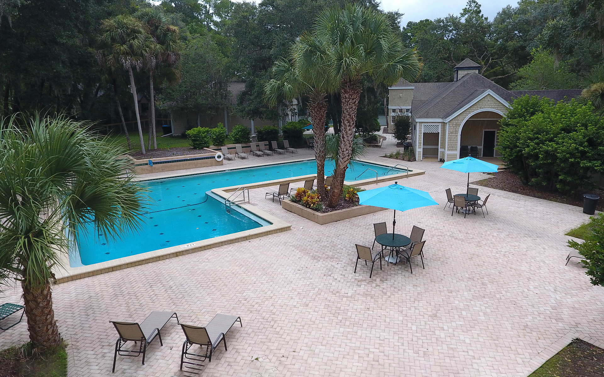 The Waterslide at the Clubhouse pool is a seasonal offering and is open when a Life Guard is on duty. The Cabanas are also seasonal and can be reserved with Food & Beverage service provided. Pool parties can be arranged at either pool.